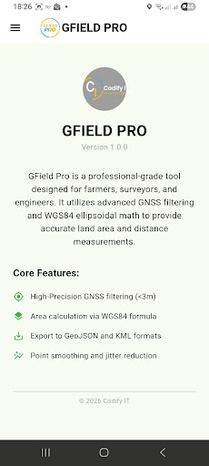 Professional Field Mapping & Management Take control of your field data with GFIELD PRO. Designed for precision and ease of use, GFIELD allows you to map boundaries, track assets, and manage site operations in real-time. Whether you are in the office or on the move, GFIELD provides the professional tools you need to stay productive. Precise Mapping: High-accuracy GPS tracking and boundary marking. Asset Management: Organize and monitor equipment and site locations. Offline Mode: Work seamlessly even in remote areas without signal.